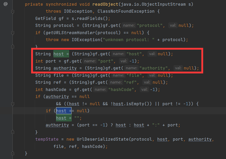 host为URL初始化时传入的参数分析确定,反序列化读取得到