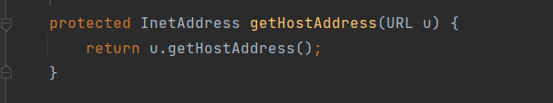 u为原本的url对象,调用u.getHostAddress()函数,回到URL.java类中调用URL.getHostAddress()函数