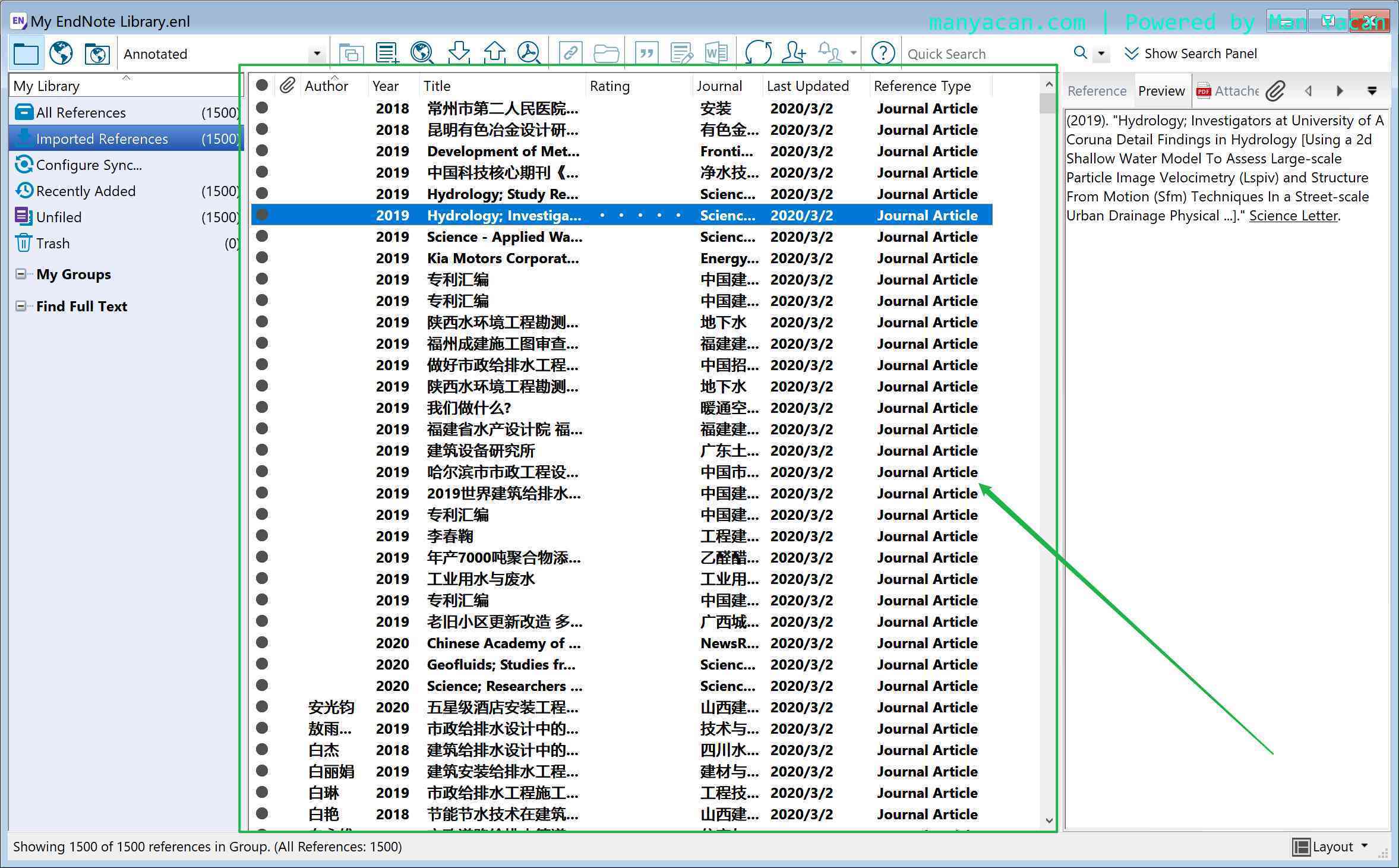 导入后,就可以在空白项目中看到导入并且已经识别的内容了。接下来我们需要做的就是把当前的项目导出为VOSviewer可以识别的文件类型。
