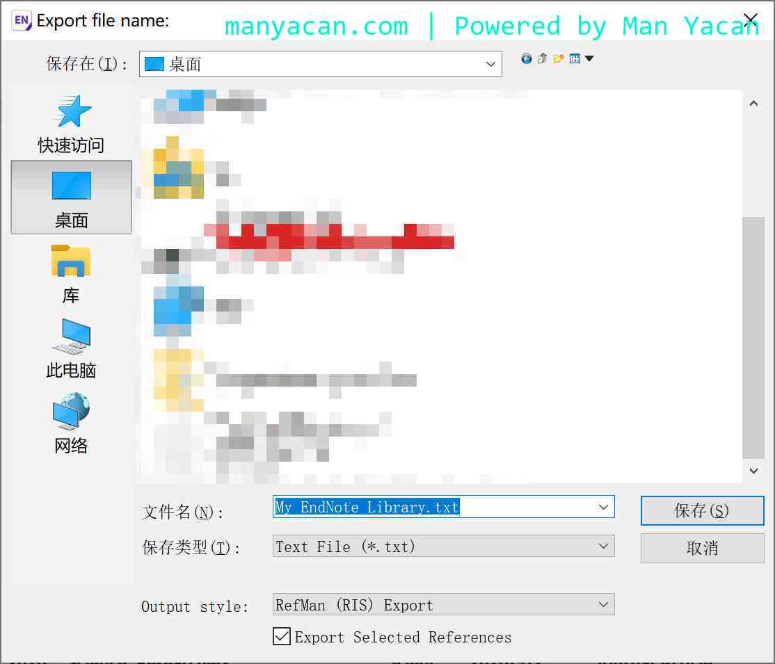 首先按下Ctrl + A全选数据,然后在导航栏中:File》Export,保存类型为.txt,Output Style 设置为 RIS。