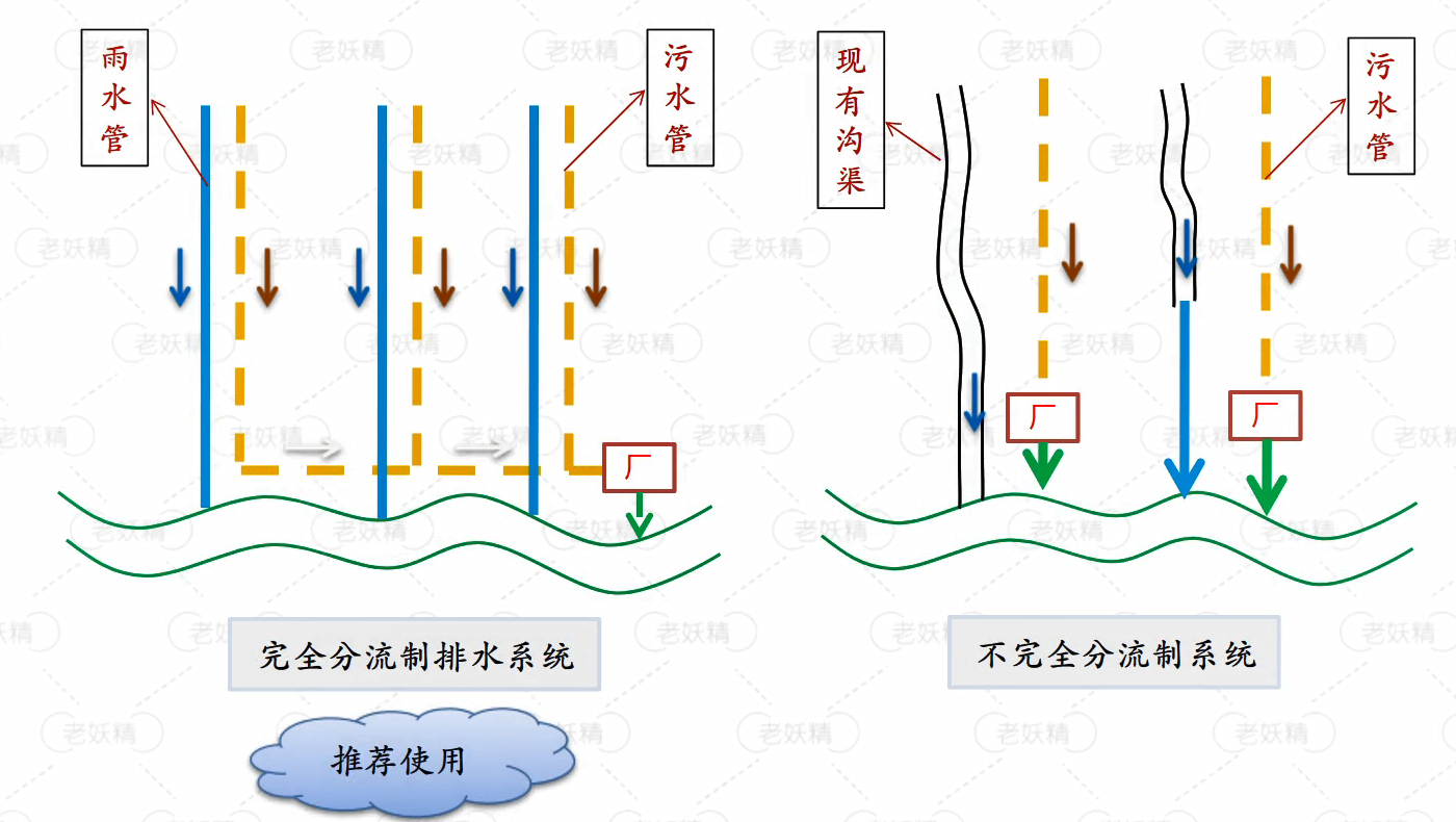 排水工程的利益驱动:污水管网——环境保护需求;雨水管网——防洪排涝。