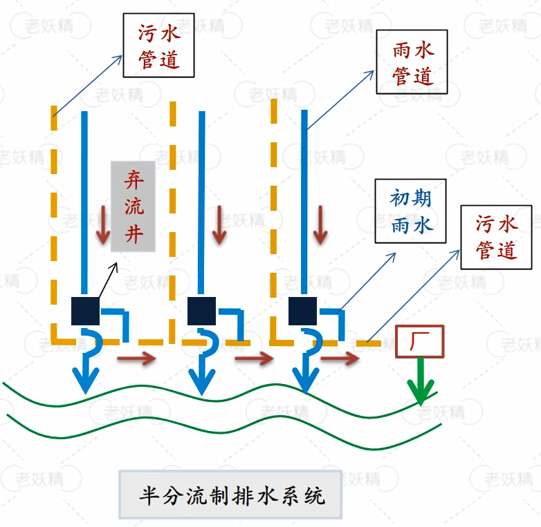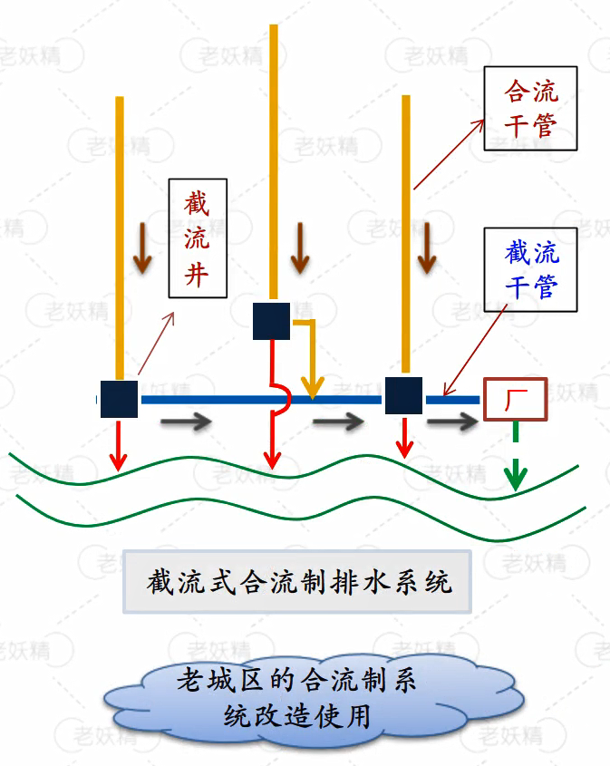 截留式:可应用于分流制污水、合流制、区域排水系统。