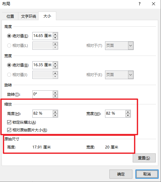 可以看到,Word中图片的原始尺寸就是我们在origin中导出时候的尺寸,之所以变小了,是因为Word进行了自动缩放,只要把百分比改为100%,那么就与Origin中的一样大了,改为50%,图形整体缩小一半(字号自然也就缩小一半)。