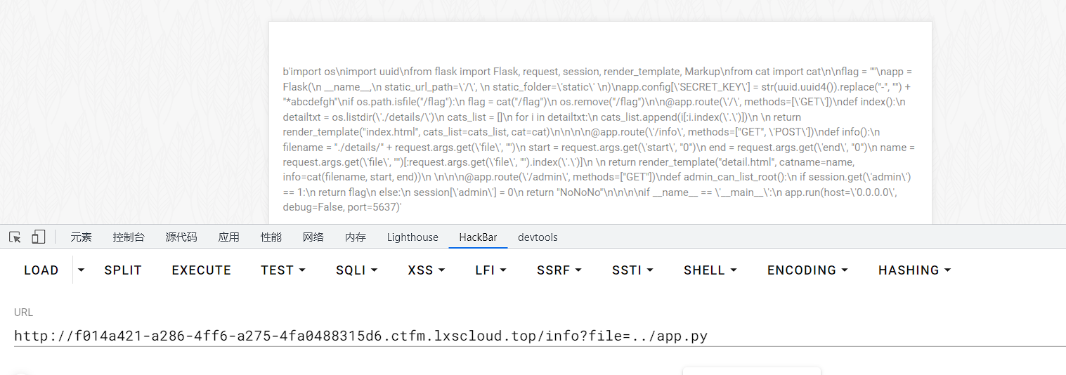 题目环境https://ctfm.lxscloud.top/category/test/challenge/13 发现有file,尝试目录穿越,读取文件源码