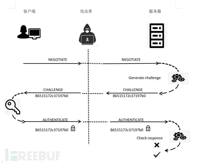 NTLM Realy 攻击其实应该称为Net-NTLM Realy 攻击,它发生在NTLM认证的第三步,在Response 消息中存在Net-NTLM Hash,当攻击者获得了 Net-NTLM Hash 后,可以重放Net-NTLM Hash 进行中间人攻击。