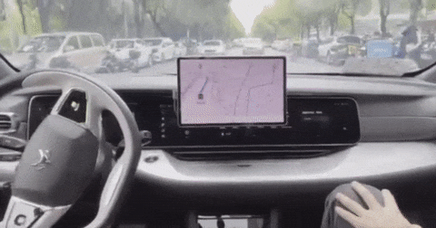 在上海车展前夕,一台自动驾驶汽车在闹市闪转腾挪,面对横冲直撞的外卖小哥也丝毫不慌,从容通过。