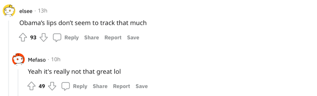 由于样本只提供音频素材,所以声音还是样本的声音,听起来违和感简直要溢出屏幕了。好在不会出现像其他一些视频那样把整张脸贴上去那么搞笑。