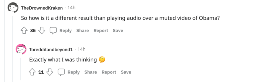 「那么,这与在奥巴马的静音视频上播放音频的结果有什么不同呢?」