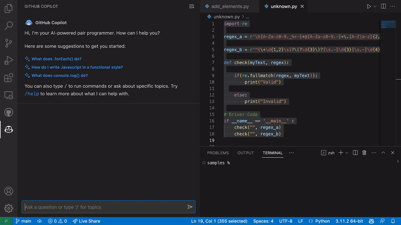 这不仅将 ChatGPT 引入了 IDE,还将 IDE 的上下文引入了 ChatGPT。这意味着我们可以在编辑器中高亮显示代码,然后向 Copilot 询问这些代码片段,用它来重构这段代码,并在必要时请它帮助我们调试它。GitHub 通过一些巧妙的提示工程来实现这一点,将提示填满尽可能多的上下文信息。