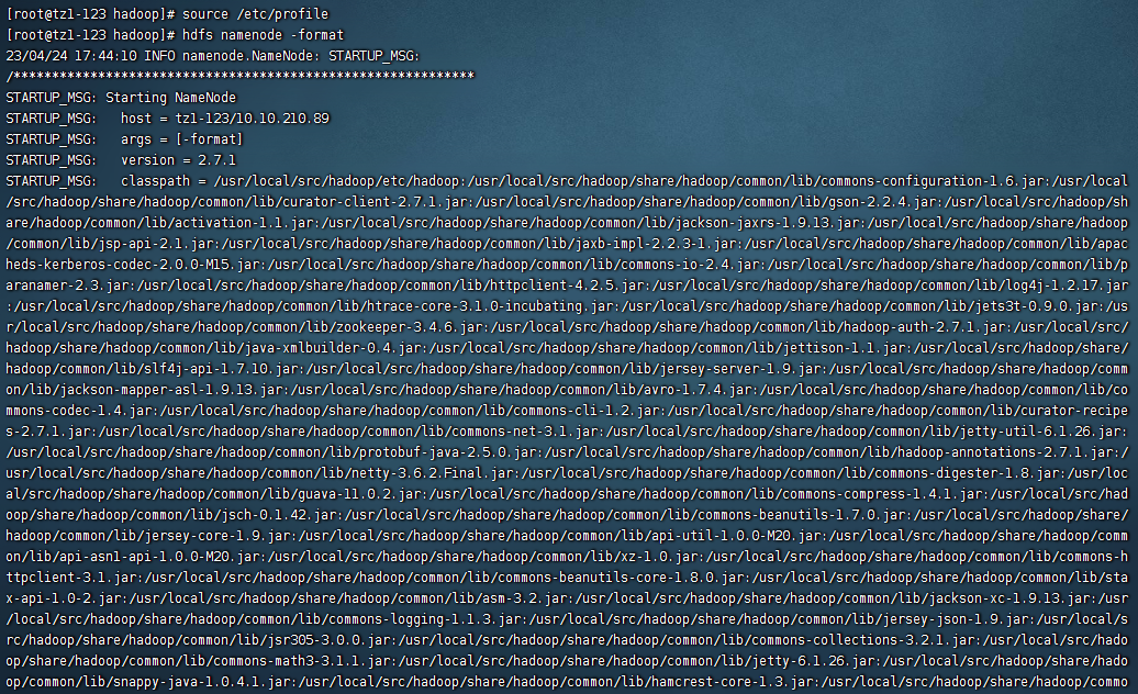 [root@tz1-123 hadoop]# scp /etc/profile tz3-123:/etc/在tz1-123(master)上格式化namenode