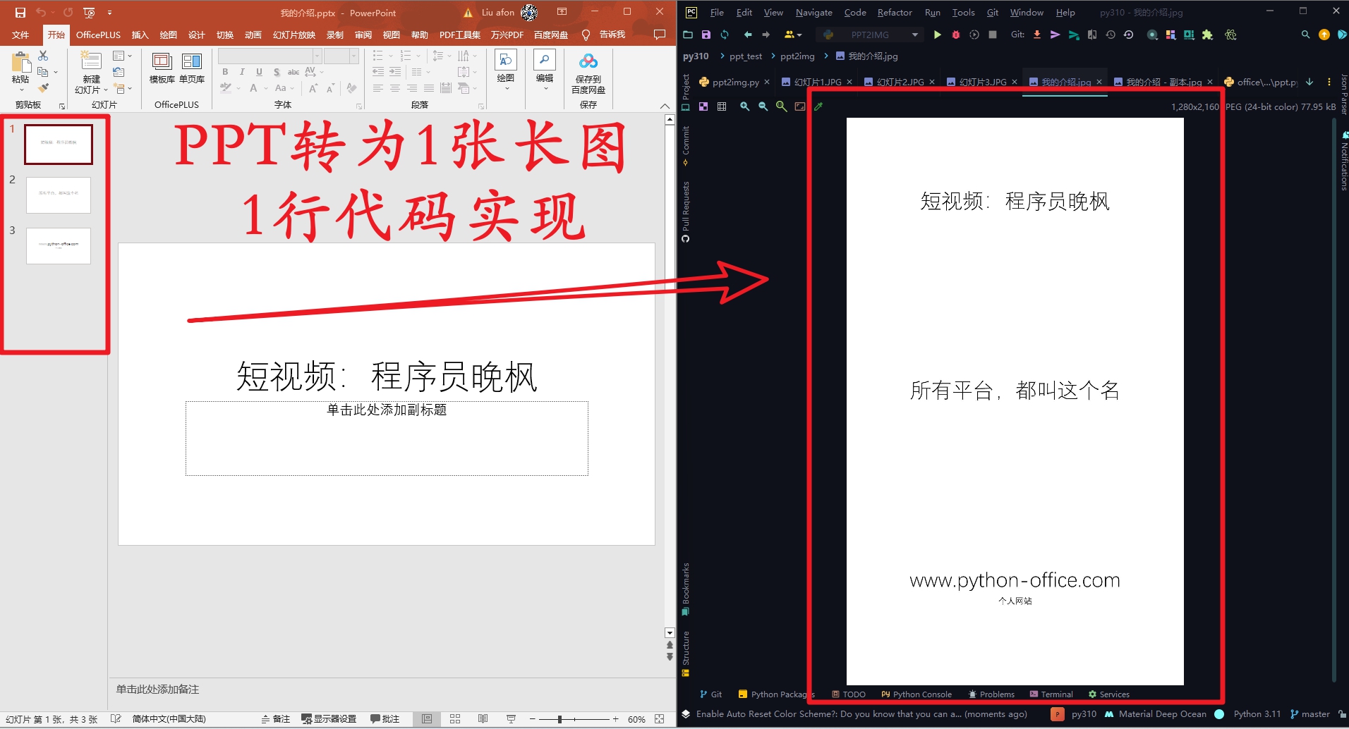 今天我们就来一起看一下:如何把PPT转为1张长图片,只需要1行Python代码!