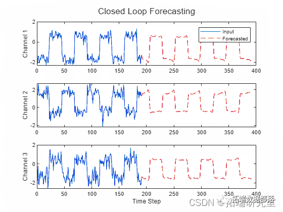 闭环预测允许您预测任意数量的时间步长,但与开环预测相比可能不太准确,因为网络在预测过程中无法访问真实值。