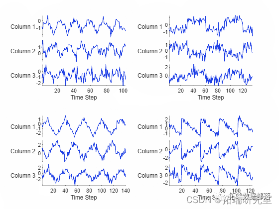 此示例使用波形数据集,其中包含 2000 个具有三个通道的不同长度的综合生成波形。该示例训练 LSTM 网络以使用闭环和开环预测在给定先前时间步长的值的情况下预测波形的未来值。
