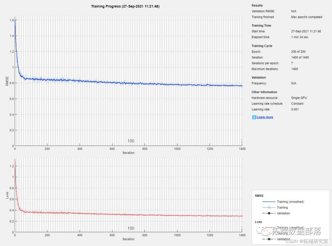 trainingOptions("adam", ... MaxEpochs=200, ...