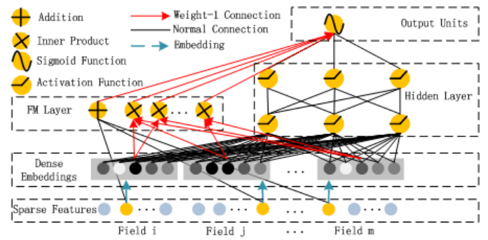 \hat{y} = sigmoid(y{FM} + y{DNN})