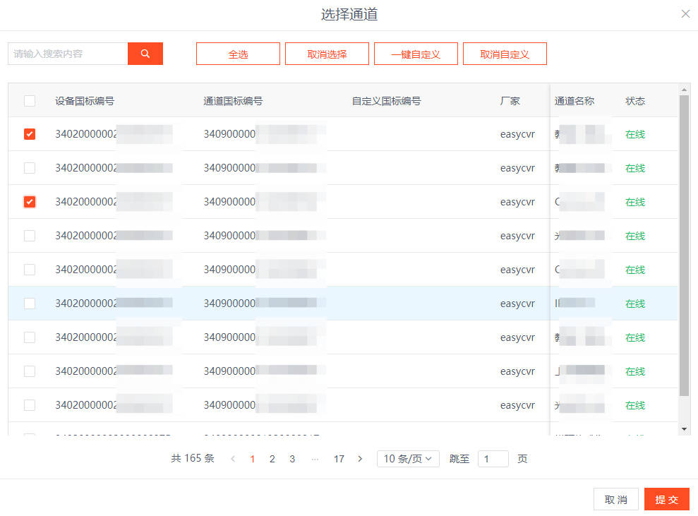 添加并配置好上级平台后,点击通道栏按钮,选择所要推送的通道,如下: