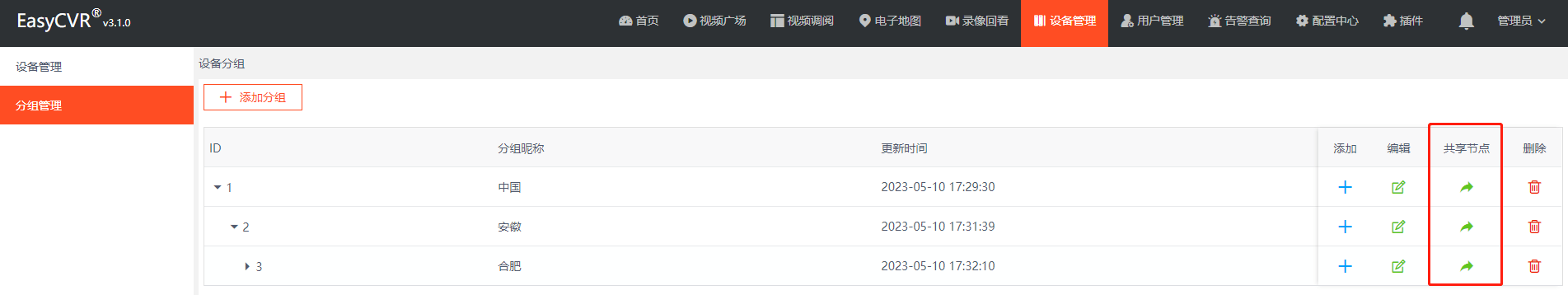 配置完成后,点击“共享节点”按钮进行推送。“共享节点”页面,在“级联编码”中选择要推送的上级平台名称: