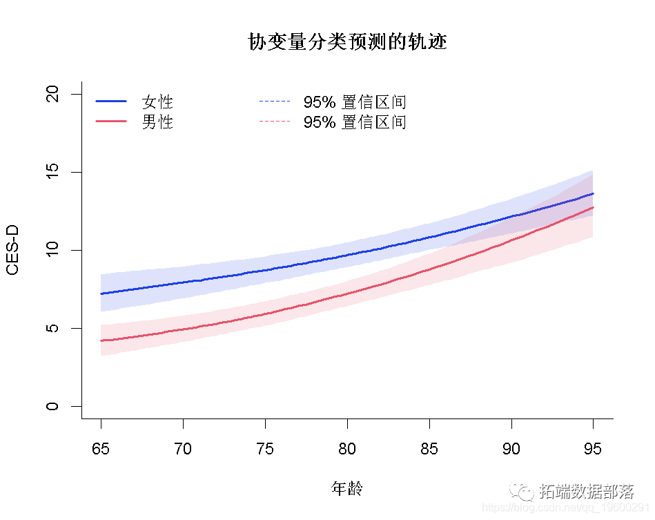 legend(legend=c("女性","男性", "95% 置信区间", "95% 置信区间"))