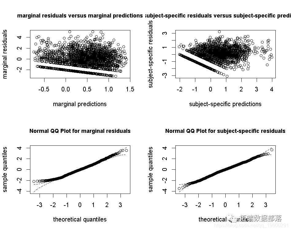 特定的残差(右下方面板中的qqplot)应为高斯分布。