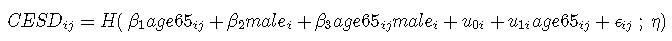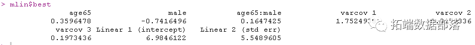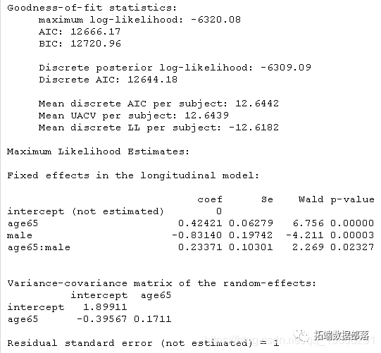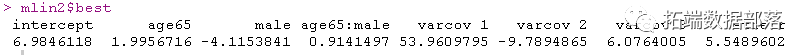 hlme(CESD ~ age65*male, random=~ age65 #链接=线性对数似然相同,但估计参数β不在同一范围内