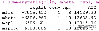 lcmm(link='5-quant-splines')要选择最合适的链接函数,可以比较这些不同的模型。通常,这可以通过使用AIC 或 UACV等顺着根据拟合优度对模型进行比较来实现 。