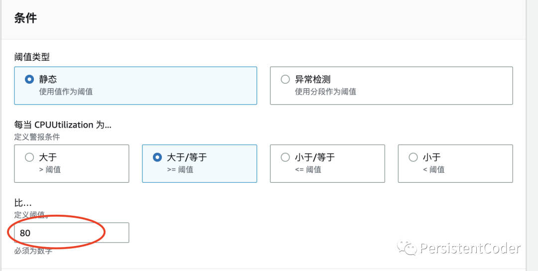 配置报警指标和阈值,比较常见的有cpu使用率、内存使用率、磁盘使用率等,然后配置百分比阈值,也就是超过这个阈值会触发告警。
