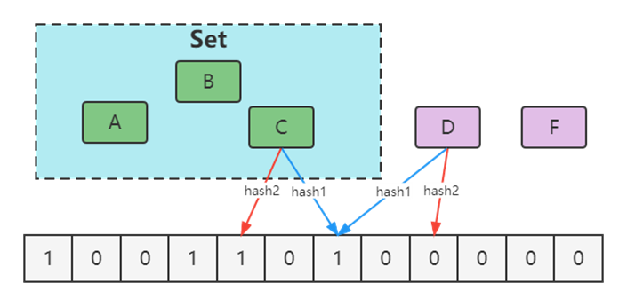 Ø如果一个元素的哈希值不在数组中,则一定不存在于集合中,但是如果哈希值在数组中,则存在误判的概率(误判)