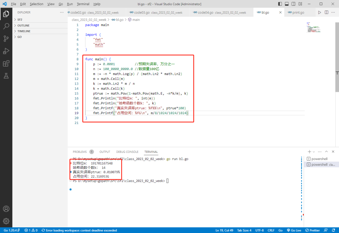 fmt.Printf("占用空间:%fG\n", m/8/1024/1024/1024)