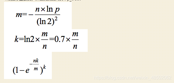 3.根据m和n,算出BloomFilter需要多少个哈希函数,向上取整,记为k。