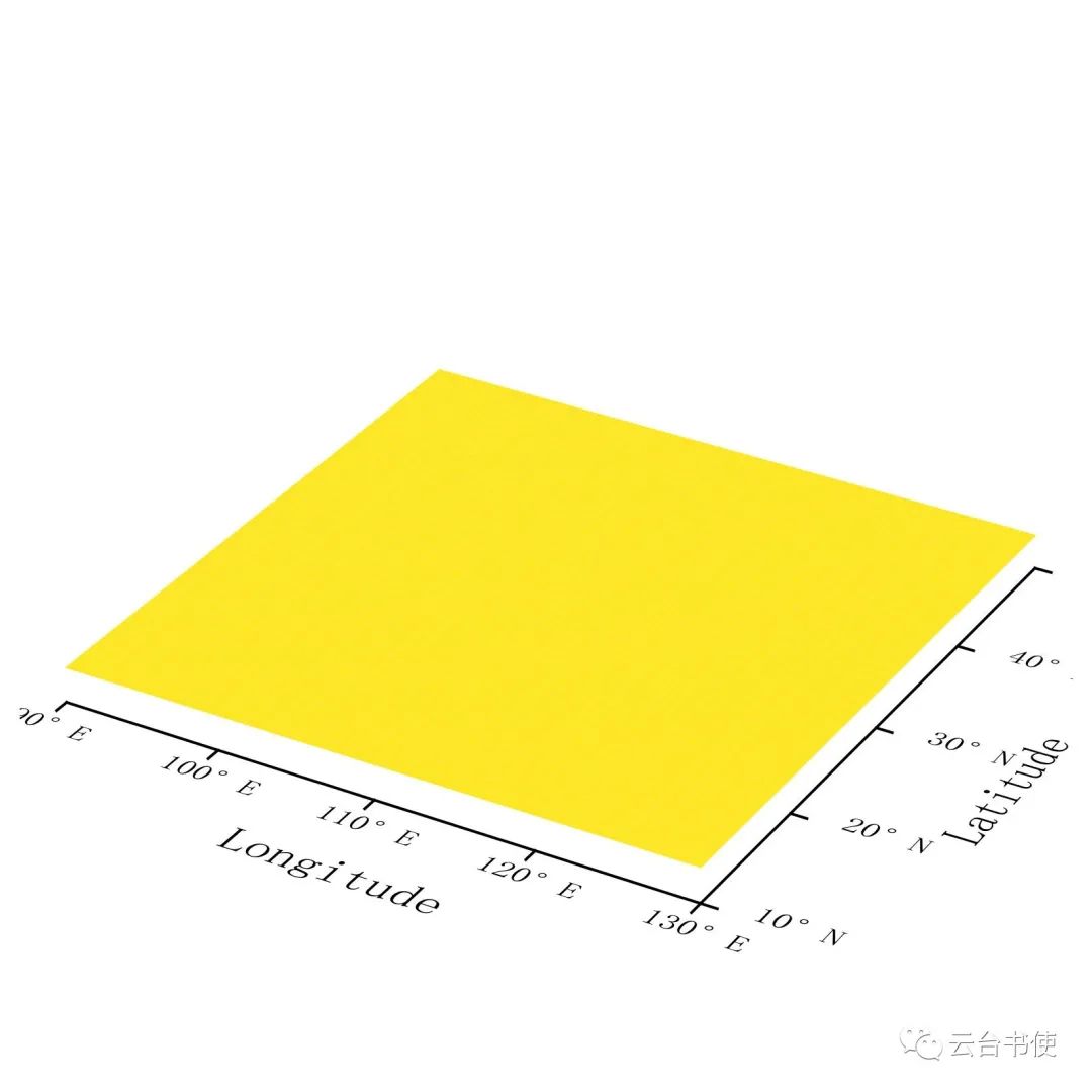 具体来说,与contourf函数类似,x,y负责经纬定位,z值不仅负责垂直定位,还负责给曲面上色。不过此处有一个冲突,即我们需要平面,不需要z变化起伏。查阅plot_surface函数可知,默认情况下,z确定曲面上色,但是,提供了facecolors参量来超越z值上色。这时不妨一个想法,如果我将z全部设为一个值,则曲面变为平面,不妨新建一个z数组: