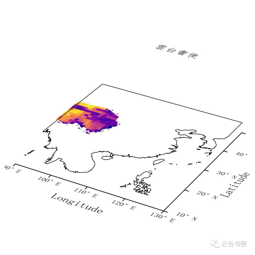但是对于pcolormesh和plot_surface的栅格,这个命令就没用了,因为这两个没有levels参数。即便是指定上下限,也会出现额外填色,我们在pcolormesh章节已经谈到过了。上面这个青藏高原挖空,明显需要对原始数据进行处理。我们使用polygon的contains语句判断数据是否落在青藏高原内,然后将没有落在里面的变成np.nan,当然也可以使用regionmask。