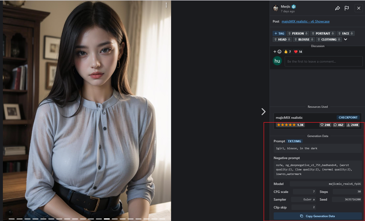 不错不错,效果还是很好的,接下来我们再换个真人模型的玩一玩。切换模型,然后去C找找找大佬这个模型的美丽的图片的关键字信息