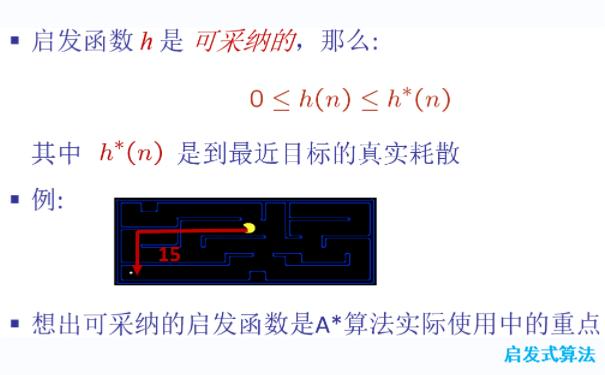 另一个例子是A*搜索算法, 主要用于解决在地图中从起点到终点的最短路径问题,它通过评估每个点到终点的预估距离来指导搜索,每次选择最小f(n) = g(n) + h(n) 的节点作为下一步搜索的节点。