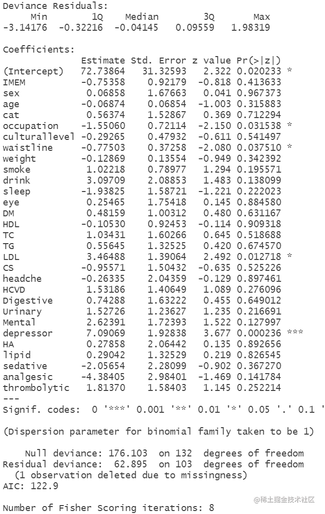 Logistic模型是一种广泛应用于分类问题的模型。它使用逻辑函数(也称为sigmoid函数)来将输入特征映射到0和1之间的概率值,该概率值表示样本属于某个类别的可能性。在仅包含由成组Lasso选出的协变量的Logistic模型中,利用这些协变量的值来预测样本的分类标签。