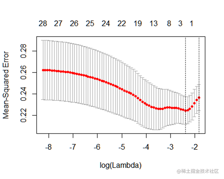 cv.lasso <- cv.ata_train$HP[1:nrow(xmat)] ) )绘制误差