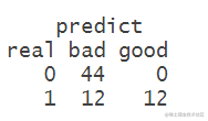 res <- data.frame(real,predict =ifelse(predict>0.5,'good','bad'))