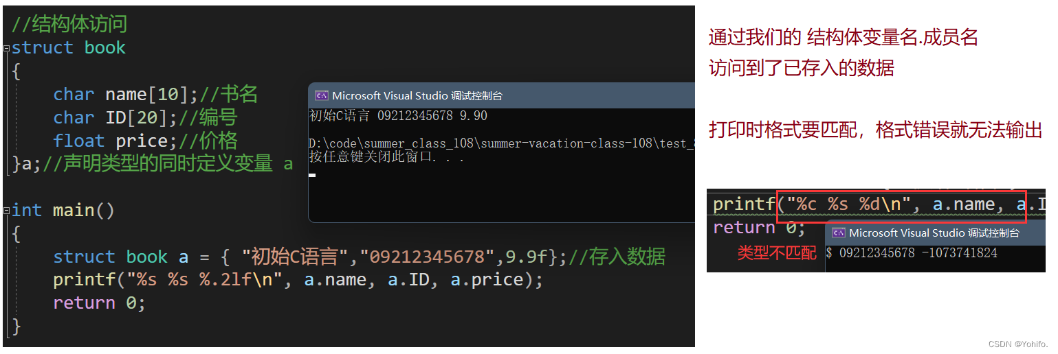 struct book a = { "初始C语言","09212345678",9.9f};//存入数据