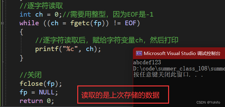 int ch = 0;//接收读取的数据,要用整型,因为EOF为-1