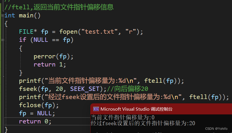 fseek(fp, 20, SEEK_SET);//向后偏移20