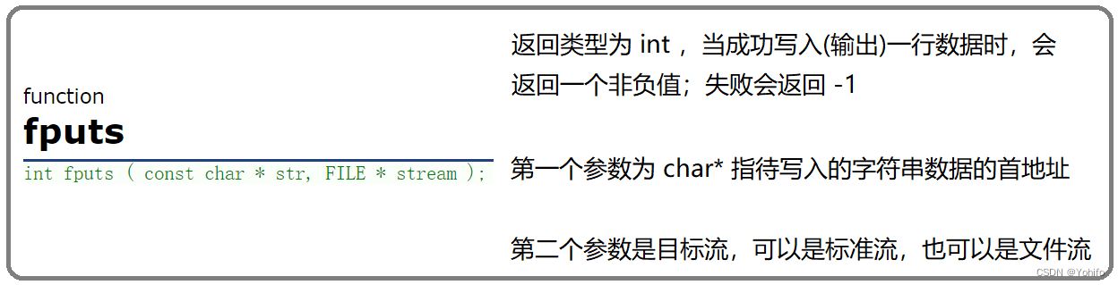文本行输出函数(写入一行数据) | fputs | 所有输出流 |