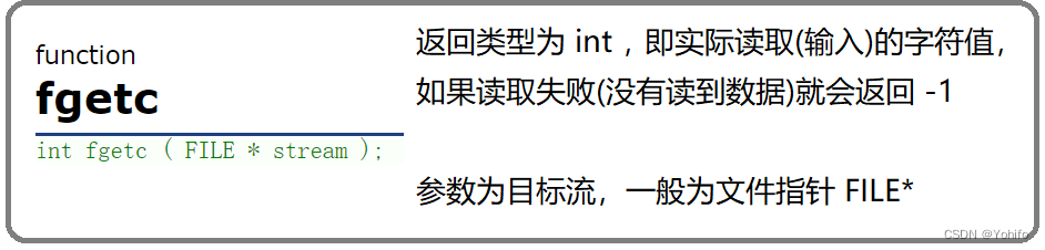 进行单字符的输入 | fgetc | 所有输入流 |