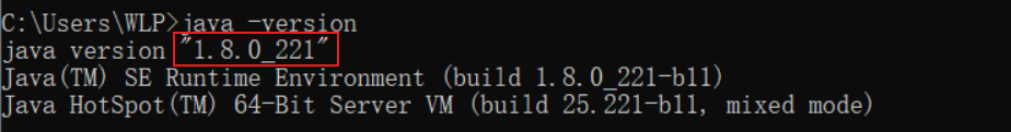 使用快捷键Win+R打开运行窗口,输入“cmd”,然后回车打开命令行界面,使用如下命令查看当前系统的Java版本: