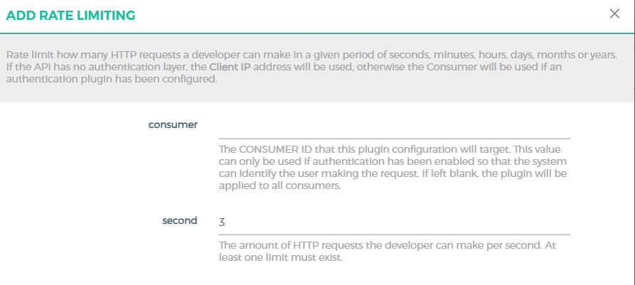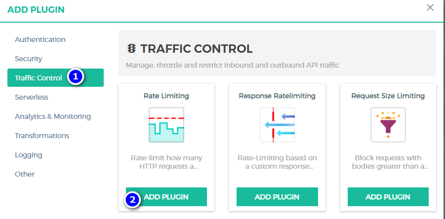 在Kong中,Traffic Control插件类型中就提供了一个Rate Limiting的限流插件。