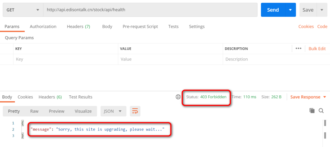 配置内容如下:返回状态码403 及 一段消息“Sorry, this site is upgrading, please wait..