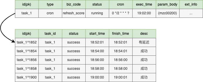 Task:业务注册的定时调度任务,分周期任务、单次任务等(下图以 cron 为例展示 19:01 时模型快照)