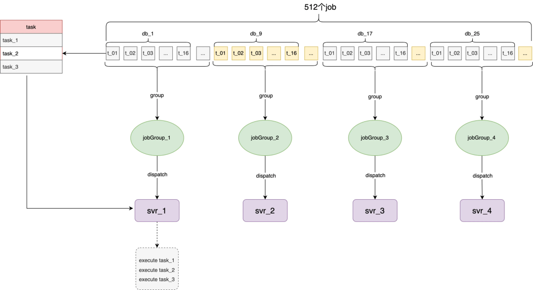 JobGroup:tjobs 内部分发调度和容灾最小单元,会根据当前 svr 数量动态生成