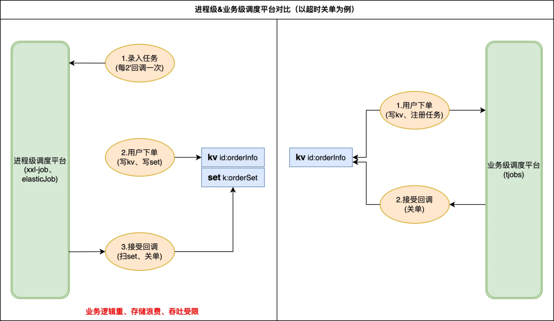 在日常开发中会经常遇到一些需要异步定时执行的业务诉求,典型的使用场景如:超时未支付订单关单、每隔 2h 更新好友排行榜、3.22 日 17 点《xx》剧上线等。目前业务侧多基于以下思路来快速搭建一个调度系统,mysql 或者 redis 队列存储待执行任务,通过 crontab 定时触发应用完成“捞取、计算、执行等操作”。不难看出存在几类亟待解决问题: