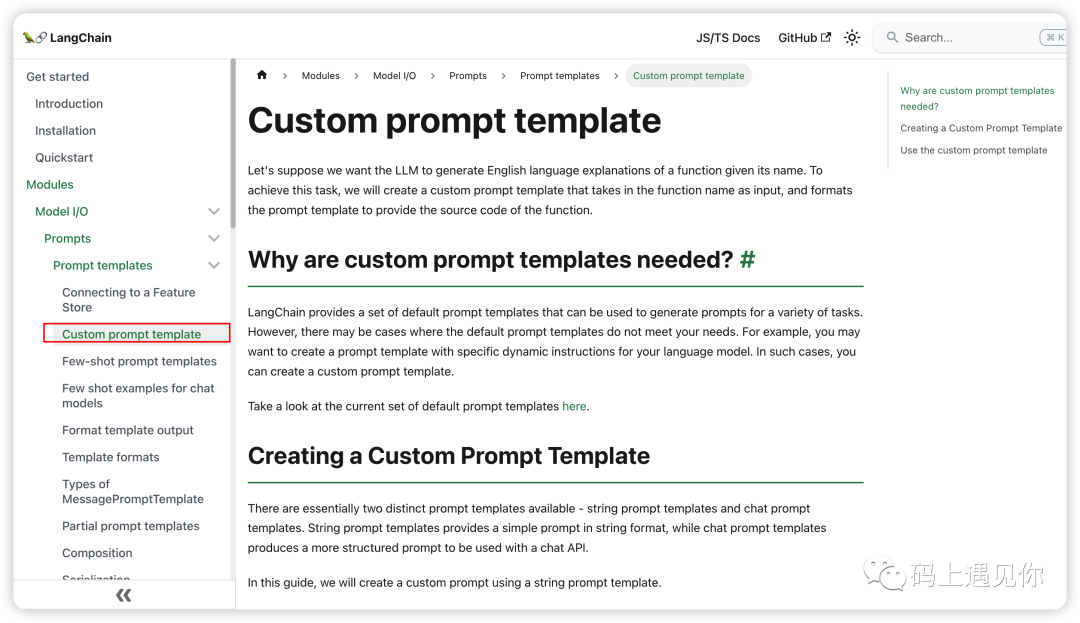 首先你如果去看它这个Quickstart,这个里面就是教你怎么样去安装这些,乱七八糟的东西,大家可以简单的看一看就行了。我们要去读懂LangChain,其实最核心的部分是在这个Modules地方 其实是把语言模型中你会用到的东西分成了这样几个大类,比如说prompt关键词,它在这个地方就会教你我应该怎么样去用LangChain做关键词的管理